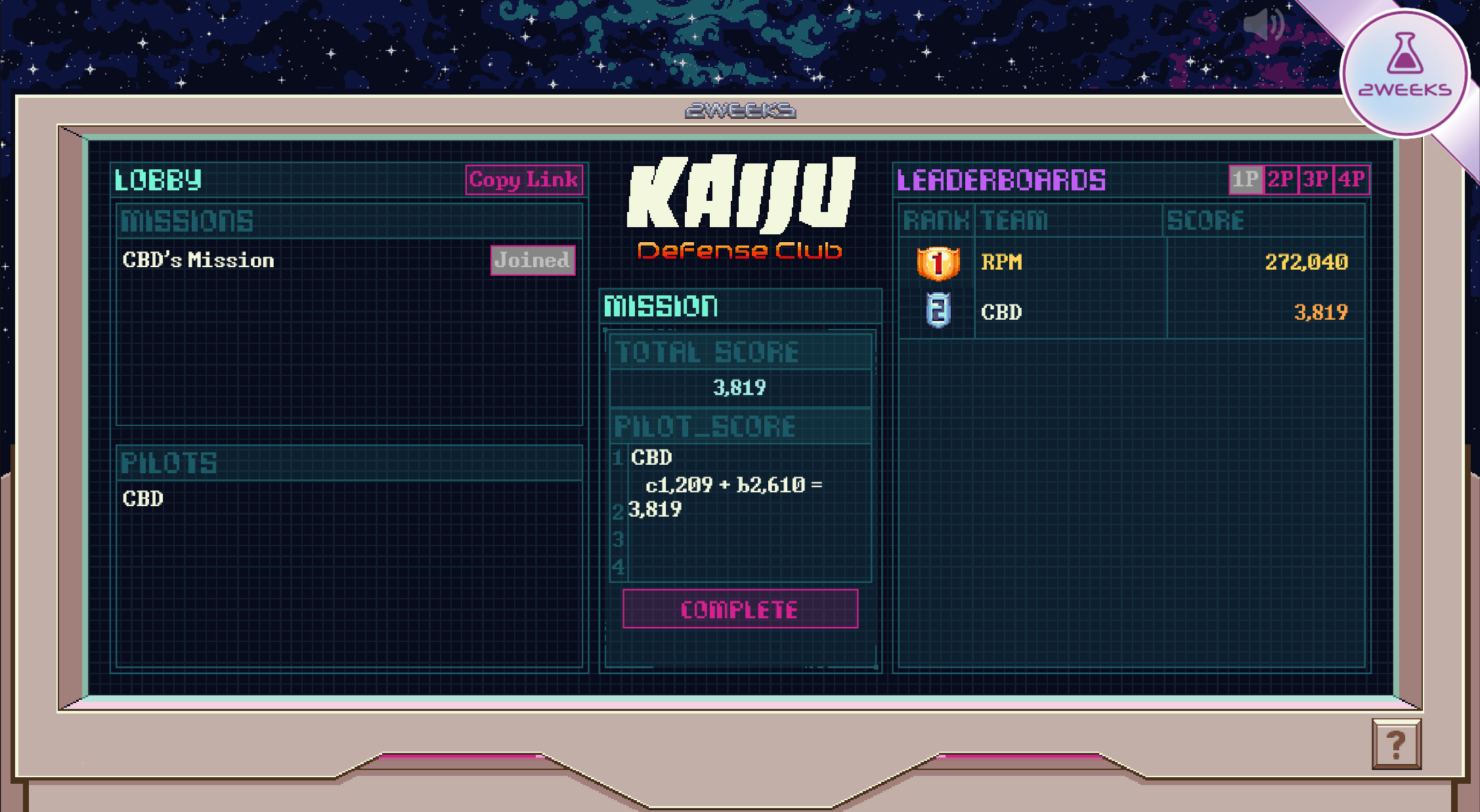 Now when you launch Kaiju Defense Club, you’ll create a lobby that you can invite your friends to - all you have to do is share the URL (there’s also a “copy link” button next to the lobby mission list). Many people can join the lobby and even have multiple missions going in parallel.