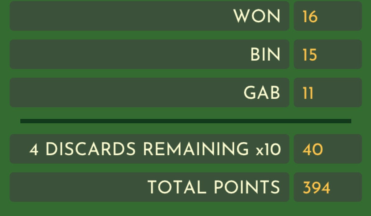 While we were working through the last week or so of development, I shared the game with some of my friends and it turns out I'm still getting my my butt kicked at word games, even the one that I designed. Oh well 😄